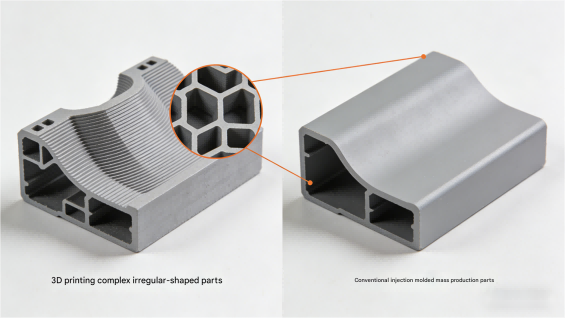 Traditional Injection Molding: Injection molding is better suited for producing large quantities of identical parts with consistent dimensions. It may have some limitations in terms of design complexity and flexibility compared to 3D printing.