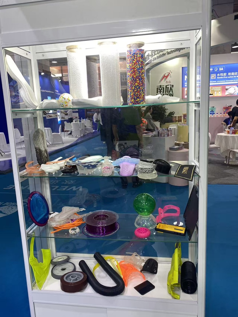 저희 부스는 국내외 수많은 고객과 신발 소재 전문가들의 관심을 한 몸에 받으며 주목을 받았습니다. 특히, 저희 제품의 다재다능함, 내구성, 그리고 미적 감각을 잘 보여주는 고성능 TPU 샘플에 방문객들은 큰 호응을 보였습니다.